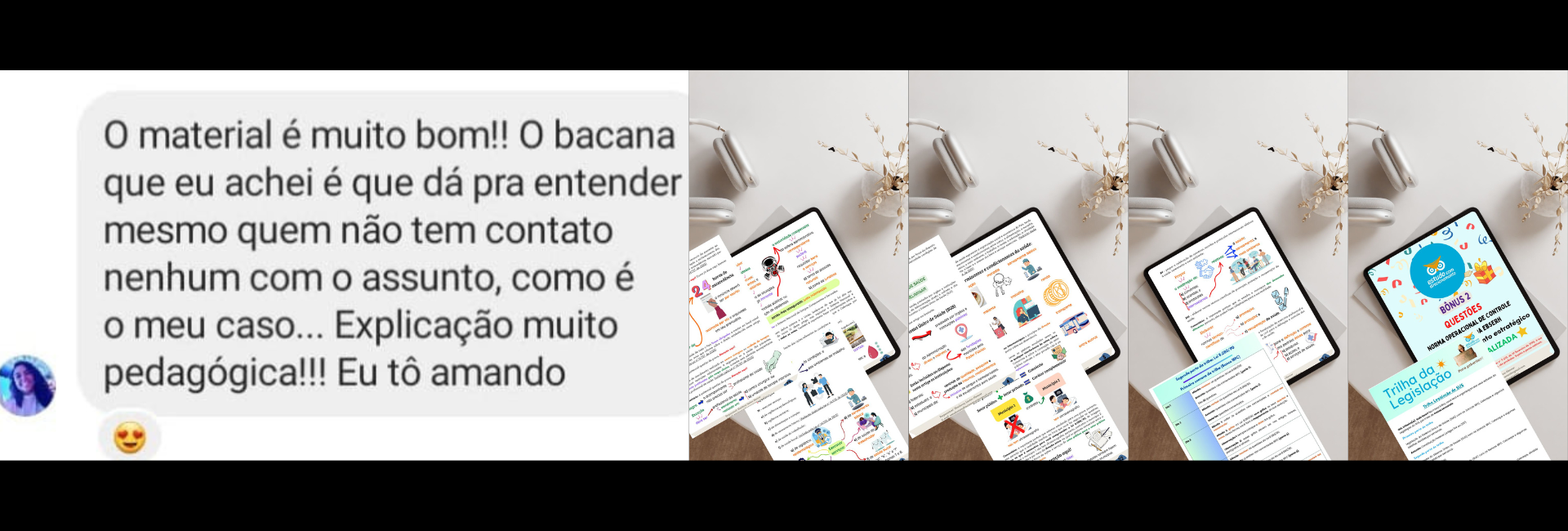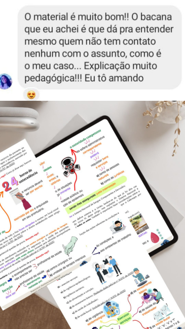Você terá mapas mentais na letra da lei. Estudo ativo e para ajudar a fixar o conteúdo.